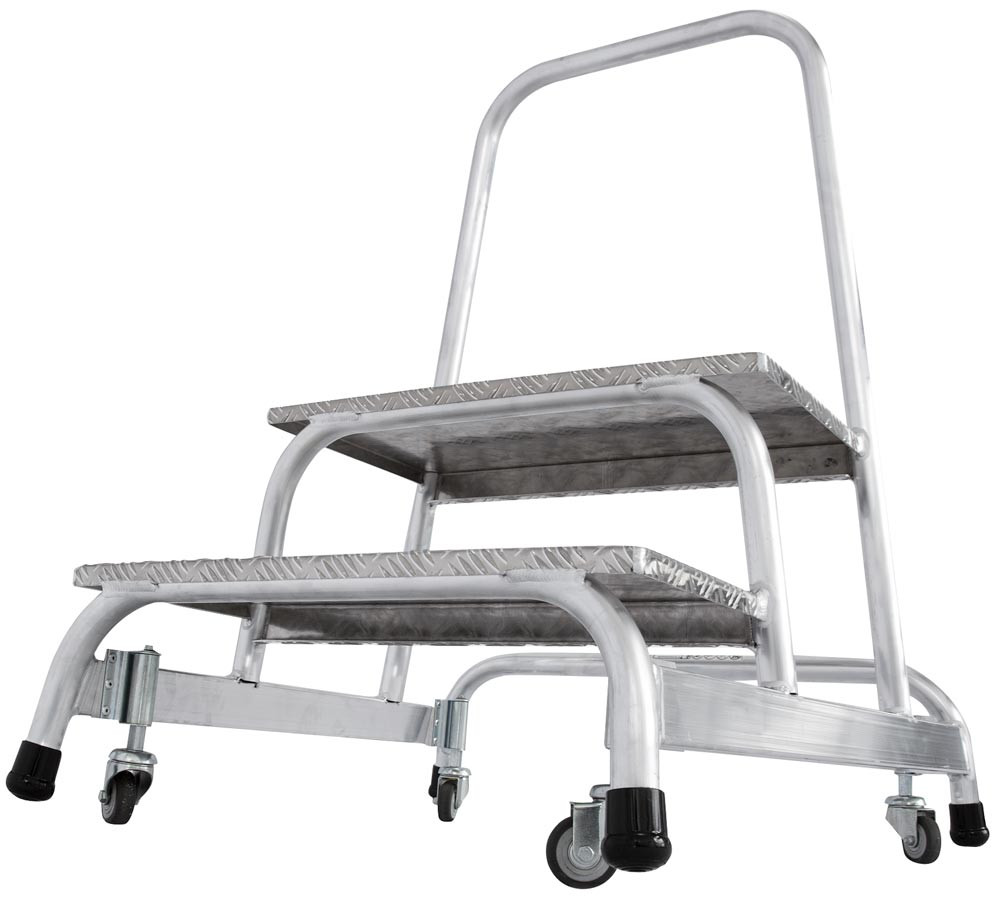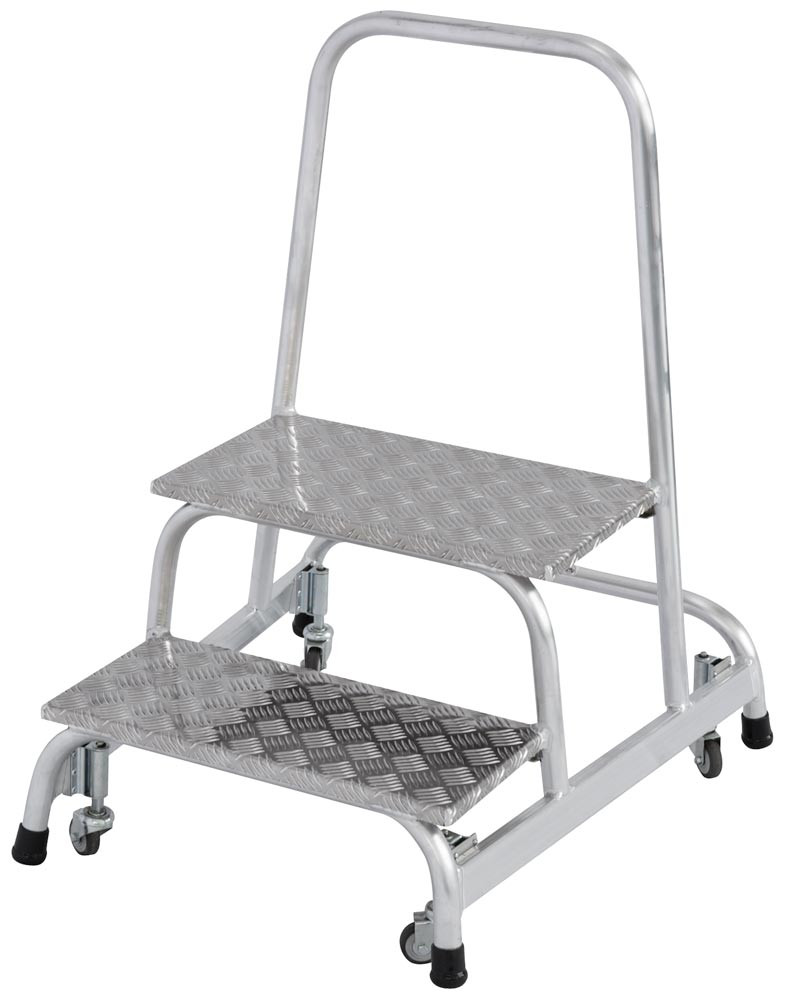 Sicherheitstritt, fahrbar, 360 Grad drehbar, 2 Stufen 240 mm, Arbeitshöhe 2450 mm, 7 kg, Grundfläche 715x780 mm, Plattform 305x520 mm