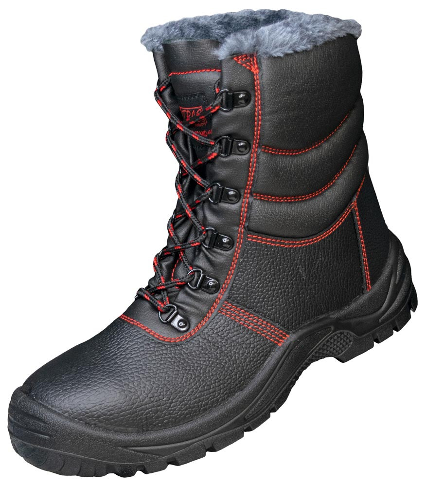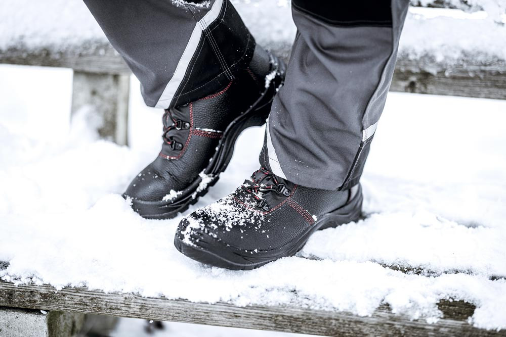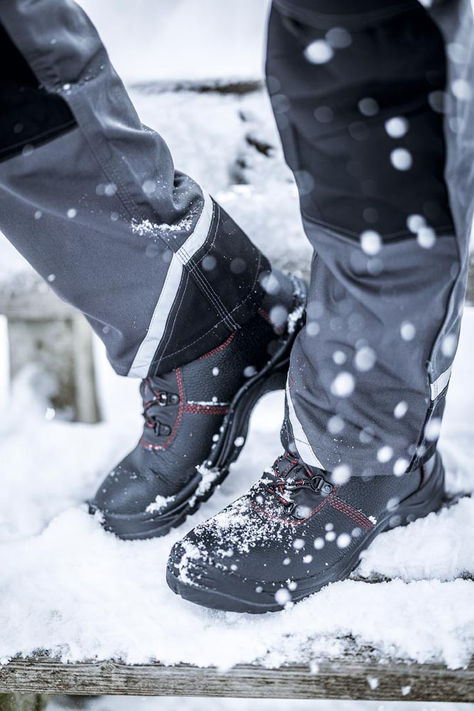 Nach EN ISO 20345, Sicherheitsklasse S3 SRC CI ∙ Zehenkappe aus Stahl ∙ Durchstichhemmende Zwischensohle aus Stahl ∙ Obermaterial aus Vollleder ∙ Widerstandsfähige PU/PU-Laufsohle, schwarz/schwarz ∙ Ergonomisch geformte Einlegesohle ∙ Gepolsterter Schaft für bestmöglichen Halt und Komfort ∙ Winterfutter im gesamten Innenbereich ∙ Weite 11 ∙ Farbe schwarz