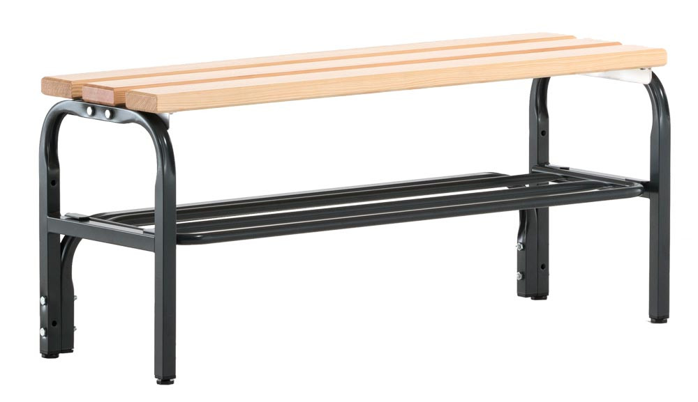 Sitzbank, Holzleisten, mit Schuhrost, TxH 350x450 mm, Länge 1015 mm, RAL 7016