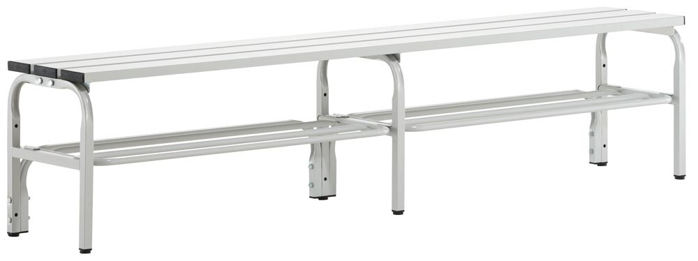 Doppelseitige Garderobenbank, ohne Schuhrost, Edelstahl/Alu, TxH 700x450 mm, Länge 1015 mm, RAL 7035 EP517498