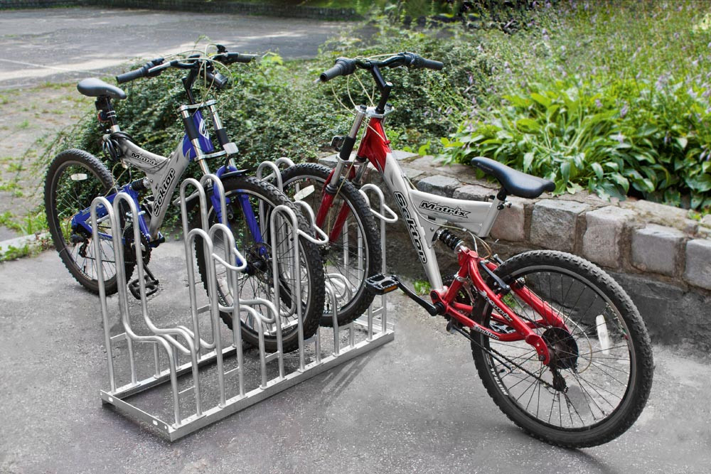 ∙ Komplett aus Stahl feuerverzinkt ∙ Abwechselnde Hoch-Tiefstellung im Winkel von 90° ∙ Haltebügel aus Ø 18 mm Rohr ∙ Haltebügel für Reifenbreite bis 55 mm, auch für Mountainbikes geeignet ∙ Grundrahmen aus Winkeleisen 30 x 30 mm ∙ Schnelle Selbstmontage ∙ Vorbereitet zur Reihenverbindung und Bodenbefestigung
