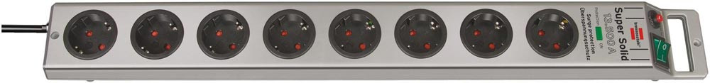 Steckdosenleiste Super Solid 16 A 230 V silber / silber Steckdosen 8 2,5 m H05VV-F 3 x 1,5 mm