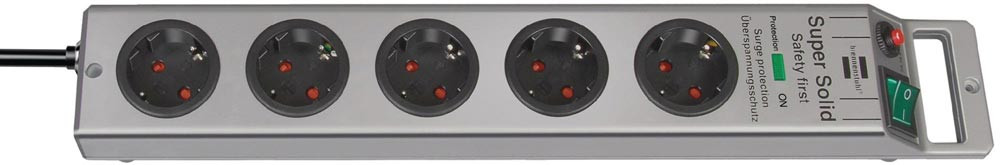 Steckdosenleiste Super Solid 16 A 250 V silber / silber Steckdosen 5 2,5 m H05VV-F 3 x 1,5 mm