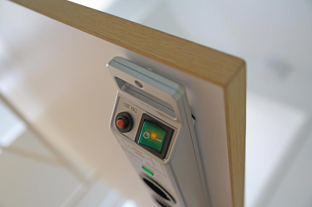 · Kabeleingang gegenüber dem Schalter, dadurch praktische Bedienung z.B. unter dem Schreibtisch