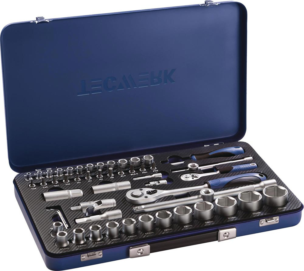 6,3 mm (1/4 ″)- und 12,5 mm (1/2 ″)-Vierkantantrieb · Steckschlüssel-Einsätze und Bedienelemente aus Chrom-Vanadium-Stahl · matt verchromt · Schraubeinsätze mit Chrom-Vanadium-Sockel und Klingen aus Spezialstahl phosphatiert · Hebel-Umschaltknarren mit 2-Komponenten-Griff und Nussverriegelungsfunktion mit Druckknopfauslösung · zweifarbige Einlage zur einfachen Werkzeug-Vollzähligkeitskontrolle Inhalt: mit 6,3 mm (1/4 ″)-Vierkantantrieb 1 Hebel-Umschaltknarre (20 Zähne) je 1 6-kant-Steckschlüssel-Einsatz SW 4 / 5 / 5,5 / 6 / 6,5 / 7 / 8 / 9 / 10 / 11 / 12 / 13 mm je 1 Steckschlüssel-Einsatz für Schrauben mit Innen-TORX®-Profil Gr. T 20 / 25 / 27 / 30 je 1 Steckschlüssel-Einsatz für Schrauben mit Innensechskant-Profil Gr. 3 / 4 / 5 / 6 mm je 1 Verlängerung 50 / 150 mm 1 Kardangelenk 1 Handgriff mit Vierkant je 1 Steckschlüssel-Einsatz für Schlitzschrauben 4 / 5,5 mm je 1 Steckschlüssel-Einsatz für Schrauben mit Kreuzschlitz (PH) Gr. 1 / 2 je 1 6kant-Stiftschlüssel SW 1,25 / 1,5 / 2,0 / 2,5 / 3,0 mm 1 Gleitstück (auch als Adapter 10,0 mm (3/8 ″) auf 6,3 mm (1/4 ″) zu verwenden mit 12,5 mm (1/2 ″)-Vierkantantrieb 1 Hebel-Umschaltknarre (36 Zähne) je 1 6-kant-Steckschlüssel-Einsatz SW 10 / 11 / 12 / 13 / 14 / 15 / 17 / 19 / 22 / 24 / 27 / 30 / 32 mm je 1 Steckschlüssel-Einsatz für Zündkerzen 16 / 21 mm je 1 Verlängerung 75 / 250 mm 1 Gleitstück 1 Kardangelenk