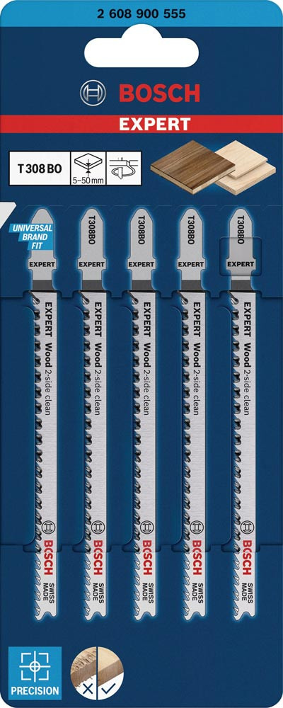 Stichsägeblatt Wood 2-side clean T 308 BO Gesamtlänge 117 mm Zahnteilung 2,2 mm 5 Stück / Karte