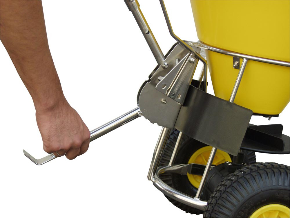 Streuwagen, mit 6 Streustufen, Streubreite 1-4 m, Edelstahlrahmen mit gelbem Kunststoff-Streugutbehälter, Vol. 50 l