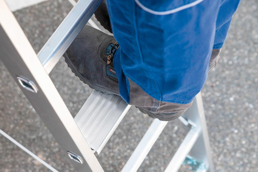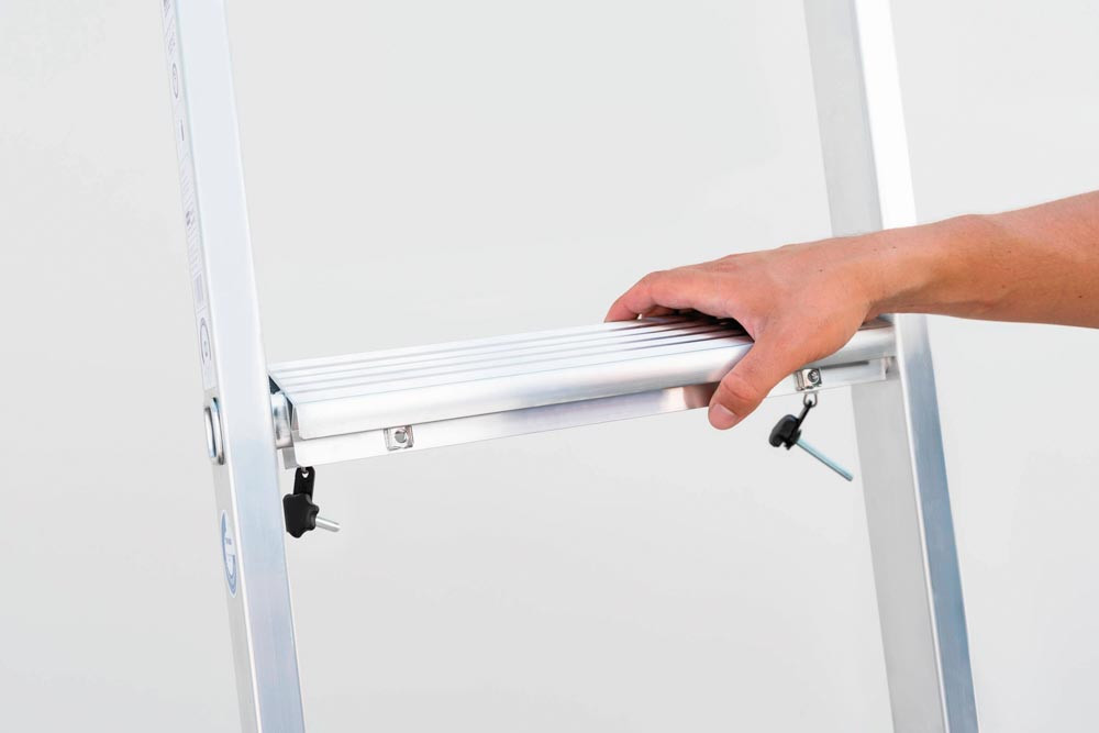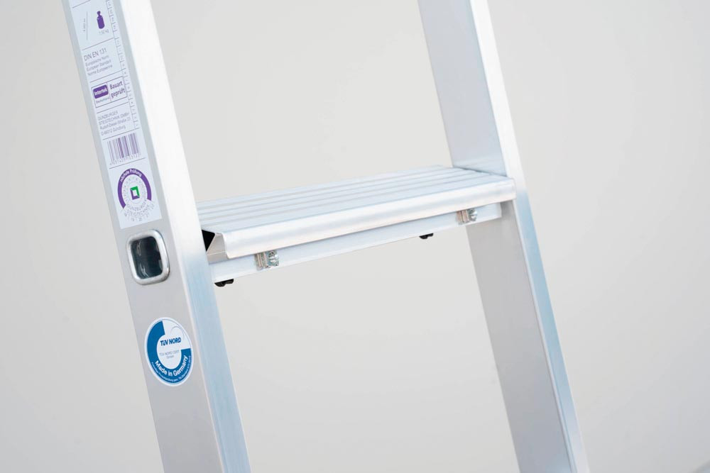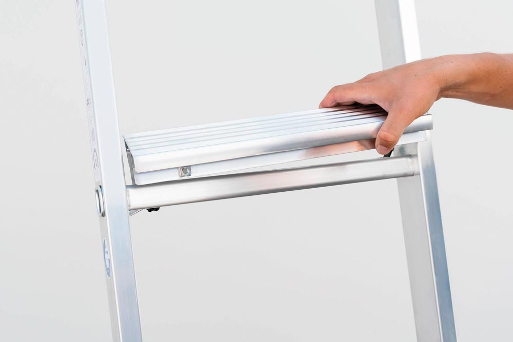 · Passend für Sprossenleitern aus Aluminium und GFK (nicht für Telekopleitern geeignet) · Kann auf jeder Sprosse montiert werden · Werkzeuglose Montage · Erfüllt die Anforderungen der TRBS 2121 Teil 2 · Trittauflagen als Zubehör erhältlich