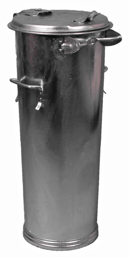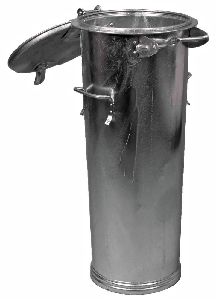 · Aus Stahlblech · Für die staubfreie Entleerung gemäß DIN 6628/6629 · Mit Scharnierdeckel inkl. Deckelheber · 2 stabile Tragegriffe · Stahlteile feuerverzinkt gemäß DIN EN ISO 1461 · Nicht brennbar gemäß DIN 4102 Baustoffklasse A1 und DIN EN 13501-1 · Langlebig und robust für die Dauerbeanspruchung im gewerblichen, industriellen und privaten Bereich