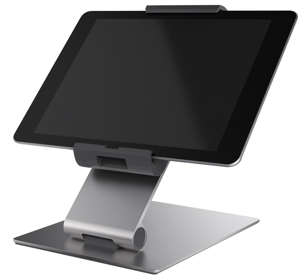 Tablet-Halter, Tischständer, für Tablet-Größen von 7-13 Zoll, BxTxH 155x183x242 mm, metallic silber