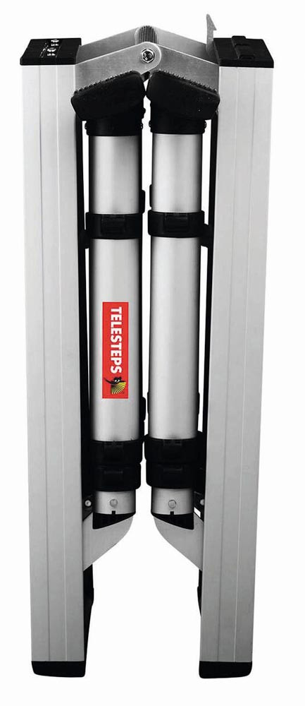 ∙ Teleskopleiter aus Aluminium ∙ Stabile Rundrohrholme, abriebfest eloxiert