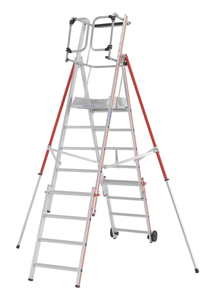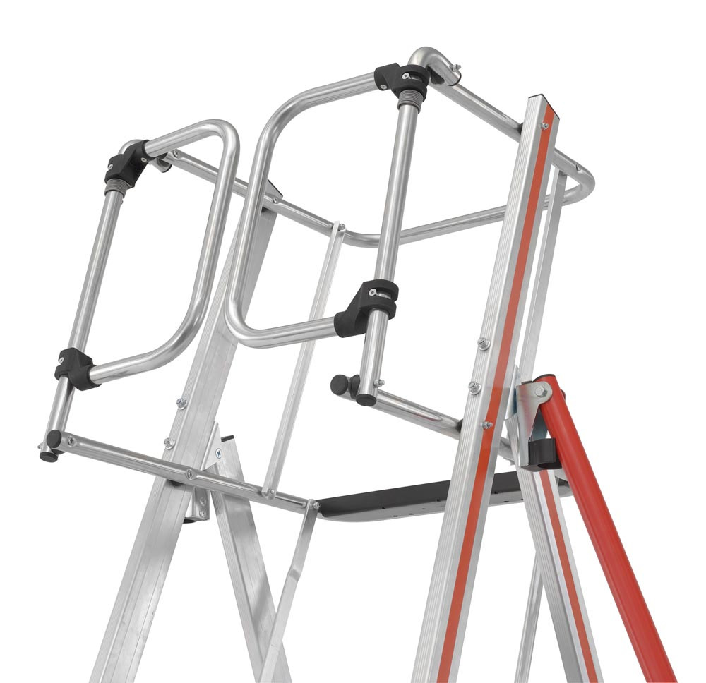 ∙ Sicheres, freihändiges Arbeiten durch Geländer und Knieleiste auf allen Seiten ∙ Geräumige Plattform 600 x 425 mm