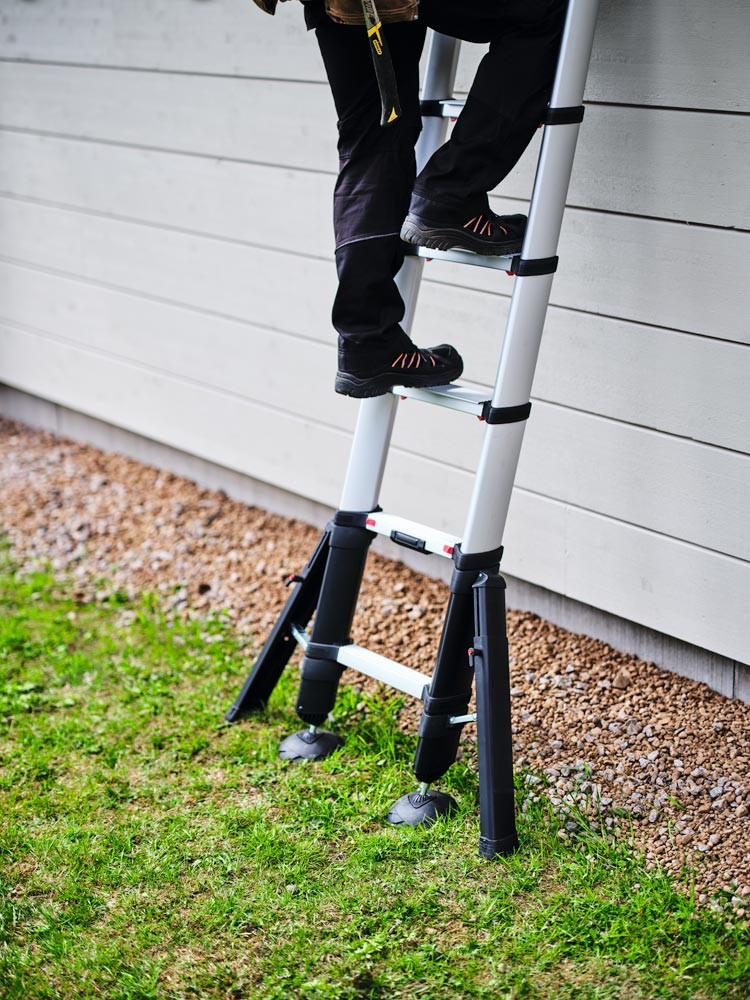 ∙ Praktisch, flexibel und enorm platzsparend - die Problemlösung, wenn wenig Platz zur Verfügung steht ∙ Zentrales Entriegeln mit nur einem Handgriff ∙ Leichtgängiges, sicheres Ein- und Ausfahren ∙ 80 mm breite Stufen aus Aluminium ∙ Anlegegummis am oberen Holmende schützen empfindliche Flächen und reduzieren die Gefahr zu verrutschen · Sicherer Stand mittels transportoptimierter Klappausleger · Bequeme ergonomische Leiterbreite · Eloxierte Holme verhindern schmutzige Hände durch Aluminiumabrieb∙ Stabile Traverse für hohe Standsicherheit · Nach EN 131 · Gem. TRBS 2121-2 als Arbeitsplatz und Verkehrsweg verwendbar · Maximale Belastung 150 kg
