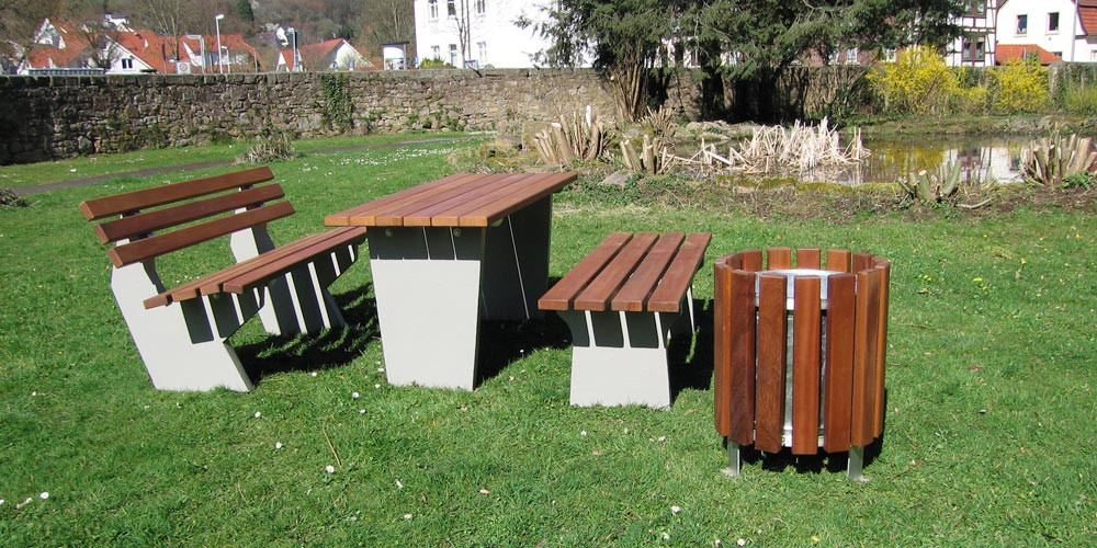 · Mit Betonfüssen zum Eingraben bzw. Einbetonieren · Die Betonbankfüsse werden ca. 25-30 cm eingegraben oder einbetoniert