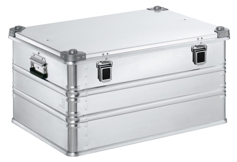 ∙ Aus Aluminium, 1 mm Blechstärke (ab 750 x 550 mm Grundmaß sogar 1,5 mm) · stapelbare Transportkisten mit vollverschweißtem Rand-, Deckel- und Bodenprofil · Umlaufende Sicken und Ecksicken für zusätzliche Formstabilität ∙ Federfallgriffe mit einer Eingriffbreite bis ca. 105 mm ∙ Deckel mit durchgängigem Edelstahlscharnier, zwei Gurtbändern und geschäumter Dichtung für Staub- und Spritzwasserschutz ∙ Klappverschlüsse, 54 mm breit mit Schlossvorbereitung