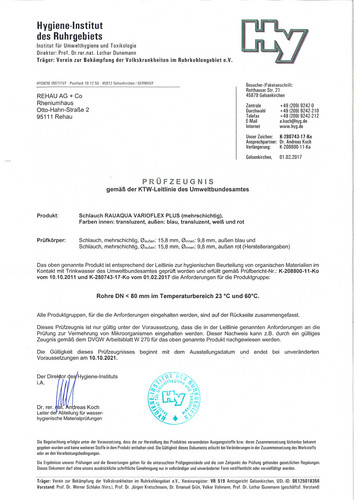 | Anwendungszweck | Trinkwasserschlauch |