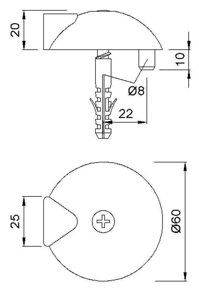 Türpuffer 2003.82 Ø 60 mm Höhe 20 mm Edelstahl matt Dübelmontage