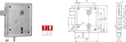 Univ.-Kastenschloss "89PK" m.hebender Falle, PZ-Lochung, m.Grt. 1111005