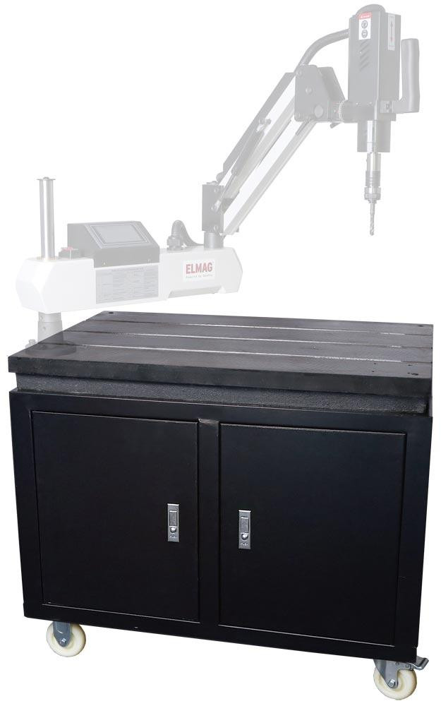 Grundplatte aus bearbeitetem Eisen S355JR ∙ Max. Tischbelastung 160 kg ∙ Unterschrank mit 2 Flügeltüren ∙ Abmessungen 900 x 600 x 730 mm (L x B x H)