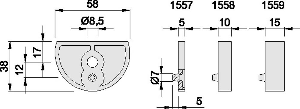 Unterlage 1559 Aluminium silberfarbig eloxiert 58 mm Höhe 15 mm f. Art. 3000258199 E6429890