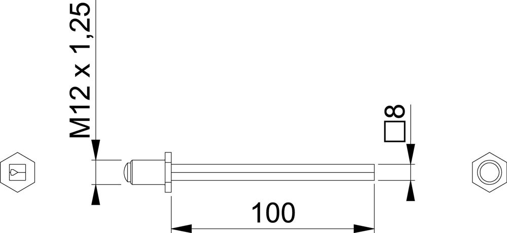 Vierkantstift FDW-Profilstift Vierkant 8 x 100 mm Eisen verzinkt geteilt M12 x 1,25