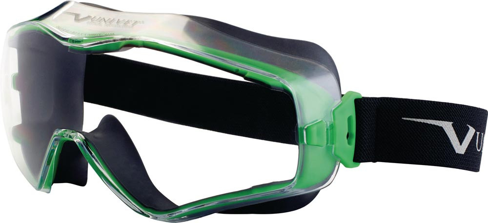 EN 166, EN 170 BT K N · ultraleichte Vollsichtschutzbrille speziell für die Kombination mit einer Atemschutzmaske (auch Halbmaske) entwickelt · das komplexe indirekte Belüftungssystem dieser Vollsichtbrille, zusammen mit der Vanguard UDC-, Anti-Kratz- und Anti-Beschlag-Beschichtung ermöglicht eine permanente klare Sicht sowie Schutz gegen Flüssigkeiten und Grobstaub · durch die ausgeformte Panoramascheibe auch als Überbrille geeignet · optional mit Visier 6x3 tragbar · (ca. 75 g) · Einsatzbereich: Automotive, Glas, Lebensmittel, Metall
