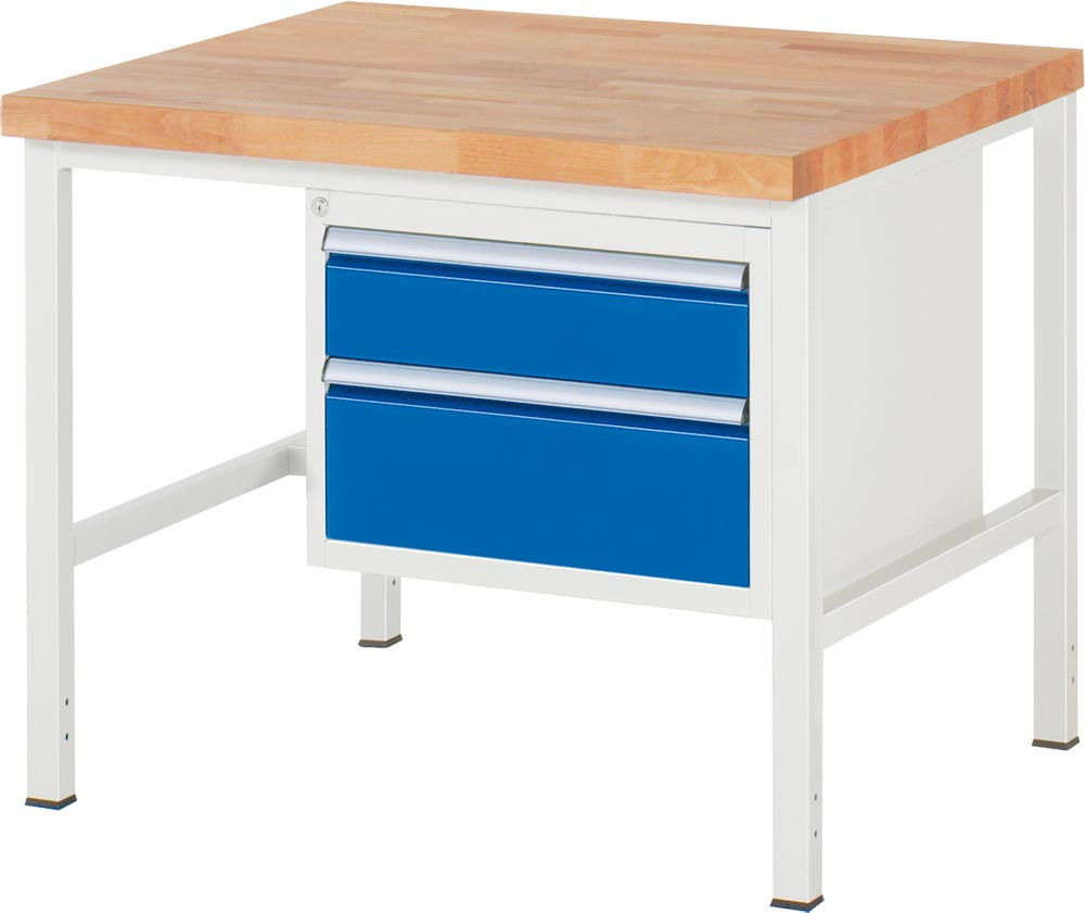 Werkbank, BxTxH 1000x700x840-1040 mm, 2 Schubladen 150/210 mm, Platte Buche 40 mm, RAL 7035/5010 EP562666