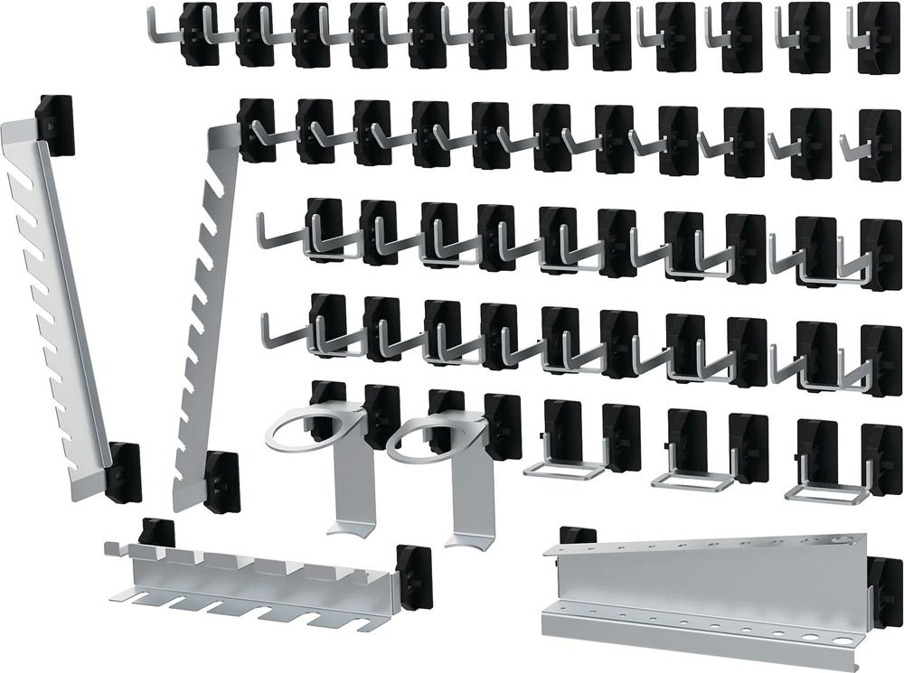 Werkzeughaltersortiment SimplaClip B2xH6mm 22 Haken/10 Doppelhaken/8 Halter Lochplatten