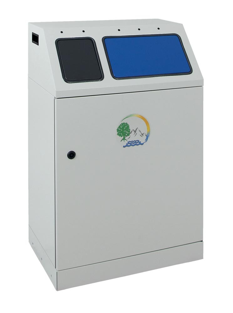 Wertstoffsammler, Volumen 1x30 + 1x60 Liter, BxTxH 580x380x920 mm, Korpus RAL 7035 lichtgrau, Schwingdeckel blau + anthrazit, verzinkte Innenbehälter EP530669