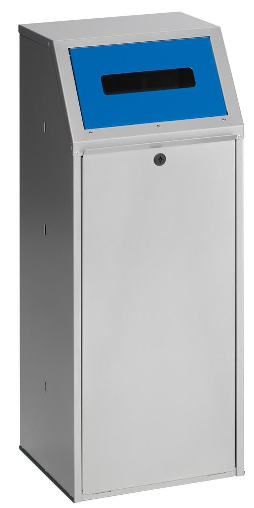 Wertstoffsammler Vol. 69 l, BxTxH 400x400x1000 mm, Einwurf rechteckig (für Papier) RAL 5010 enzianblau, Korpus silber, inkl. Inneneinsatz