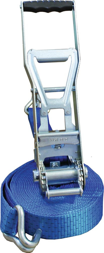 Zurrgurt DIN EN 12195-2 Länge 10 m Breite 50 mm mit Langhebelratsche + Spitzhaken LC U 5000 daN E6010227
